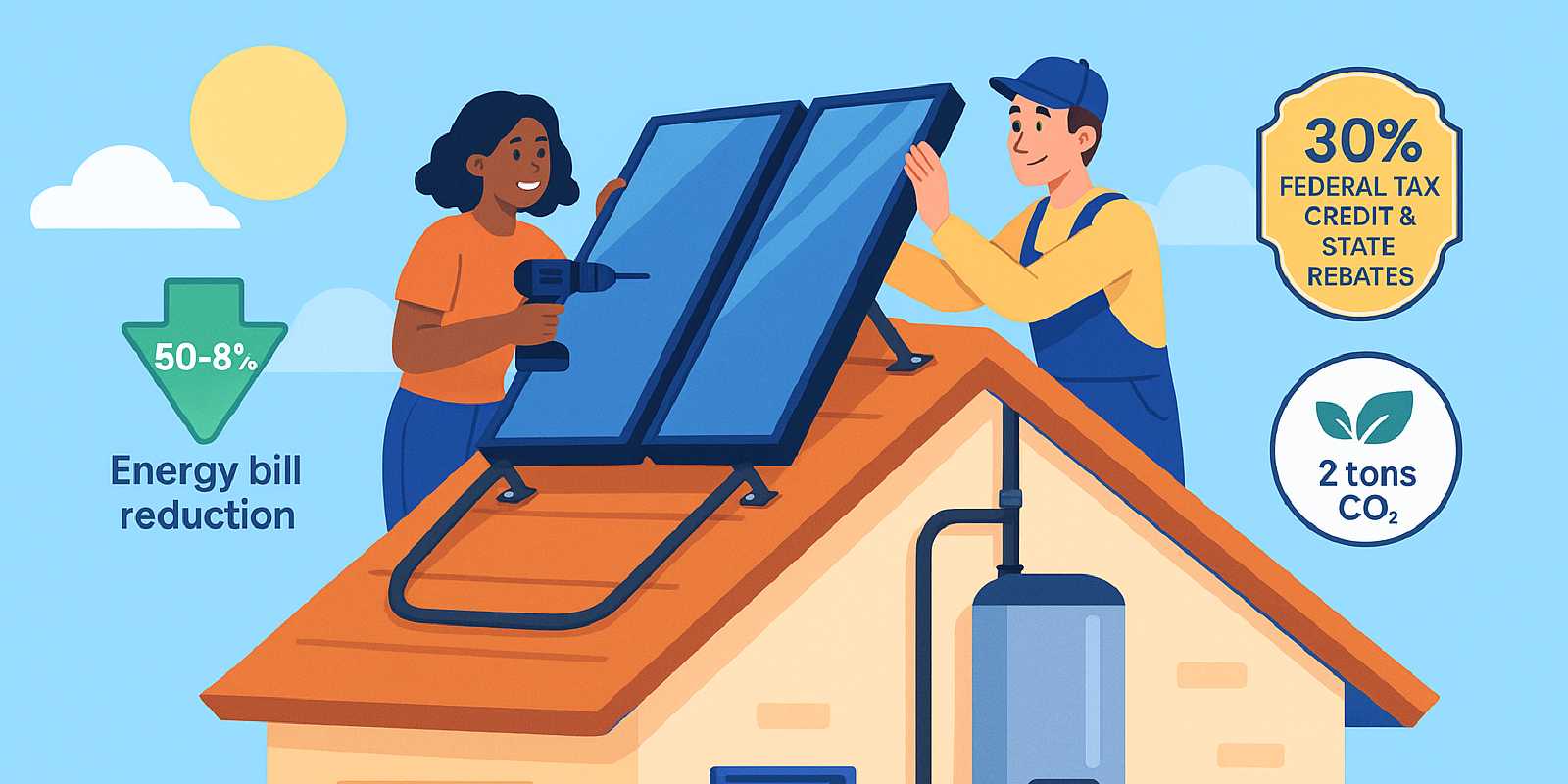 Quality systems reduce water-heating energy by 50–80%, saving $100–$300+ annually depending on household size and local energy rates. With the 30% federal tax credit and state rebates, typical payback is 5–10 years in sunny regions. Over a 20-year lifespan, savings often exceed $3,000–$6,000.